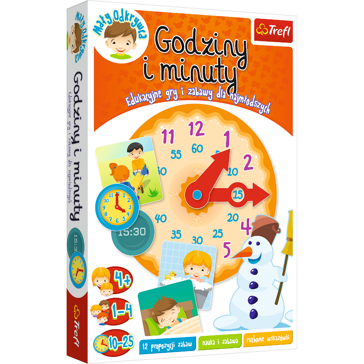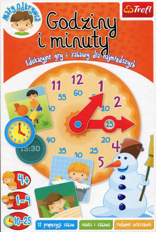 Godziny i minuty to wesoła zabawa, która pozwala dzieciom poznać działanie zegara oraz uczy przyporządkować różne czynności odpowiednim porom dnia i dniom tygodnia.
