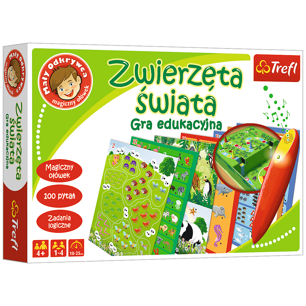 Zapraszamy na wyprawę po rozmaitych zakątkach świata w poszukiwaniu ich mieszkańców! Gra rozbudzi w Małych Odkrywcach ciekawość świata oraz pozwoli im poznać i odkryć różne gatunki zwierząt. Czy umiesz odpowiedzieć na pytanie, jakie zwierzęta żyją w dżungli, a jakie w morskich głębinach? Czy wiesz, jak się nazywają, czym się żywią i jak wyglądają ich domki?