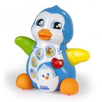Elektroniczna, mówiąca zabawka edukacyjna: uczy pierwszych liter, nazw zwierząt i pobudza rozwój uczuciowy dziecka dzięki postaciom Mamy i Synka. Uczy pierwszych słów po angielsku. Mały pingwinek jest jednocześnie klawiszem pop-up, który wchodzi winterakcję z mamą pingwinem. 8 piosenek i sympatyczne efekty dźwiękowe. Usta, oczy i skrzydła poruszają się. Funkcja Try Me (Wypróbuj mnie), widoczny przycisk On/Off Przełącznikwyboru języka.