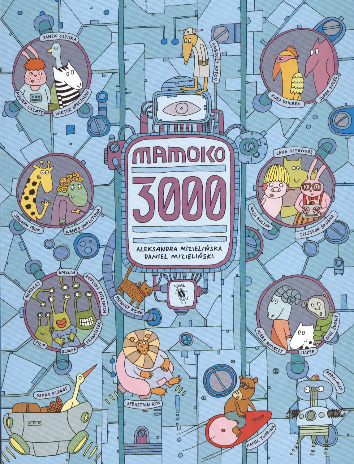 Trzeci tom bestsellerowej serii o miasteczku Mamoko. Tym razem pełna szczegółów obrazkowa opowieść przenosi nas w przyszłość. Jest rok 3000. Miasteczko Mamoko roi się od przybyszów z dalekich planet, robotów i latających pojazdów. Przenieś się w przyszłość i zobacz, co przydarzyło się jego mieszkańcom. Sprawdź, kogo ściga Wiktor Specjalny, a kogo – Robo-Max. Przekonaj się, nad czym pracuje Telesfor Śrubka i co planuje Wincenty Orbit. Czy wiesz, kto miał powietrzną stłuczkę i kto da dziś wielki koncert? Szukaj kolejnych bohaterów i odkrywaj ich przygody. Spróbuj znaleźć wszystkie jabłka i ukryte przedmioty. Każda rozkładówka książki jest kosmicznie narysowaną panoramą fragmentu tytułowego miasteczka. Razem tworzą obraz jednego dnia z życia Mamoko i jego sympatycznych mieszkańców. Uważne dziecięce oko odnajdzie tu kilkadziesiąt równolegle poprowadzonych historii, opowiedzianych wyłącznie za pomocą rysunków. Pełne najrozmaitszych szczegółów ilustracje można oglądać godzinami, śledząc przygody poszczególnych bohaterów, oglądając zakamarki miasteczka i wyszukując ukryte przedmioty.