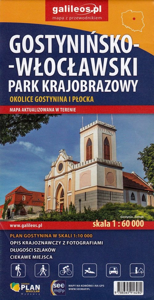 Opracowanie kartograficzne obejmuje obszar Gostynińsko-Włocławskiego Parku Krajobrazowego. Na mapie zaznaczono informacje przydatne turyście, jak zabytki, noclegi, granice obszarów chronionych. Podano aktualne przebiegi szlaków pieszych, rowerowych i konnych, łącznie z kilometrażem, co pozwoli łatwiej zaplanować wycieczkę. Ukształtowanie terenu pokazano przy pomocy warstwic o cięciu co 5 m. Siatka geograficzna zgodna z GPS oparta na układzie WGS-84.