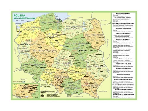 Na jednej stronie mapa administracyjna Polski.