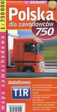 Mapa przeznaczona jest nie tylko dla kierowców zawodowych (TIR-ów, ciężarówek,) ale i dla wszystkich innych kierowców, którzy dużo jeżdżą po Polsce.Ma rozbudowaną treść tematyczną przydatną kierowcom zawodowym:- ponadnormatywne spadki z opisem stopnia nachylenia,- pionowe i poziome ograniczenia skrajni,- polecane parkingi (TIR, prysznic, gastronomia),- czarne punkty,- utrudnienia w ruchu pojazdów na drogach krajowych (miejsca tworzenia się korków),- prawdopodobna lokalizacja fotoradarów.Podobnie jak mapa samochodowa Polski w wersji podstawowej charakteryzuje się aktualną i szczegółową siecią dróg.