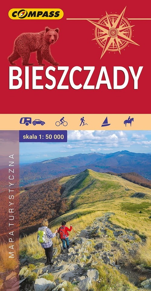 Prezentowany obszar sięga po Lesko i Ustrzyki Dln. na północy, Komańczę na zachodzie, granicę z Ukrainą na wschodzie. Na południu nowe wydanie zostało poszerzone o fragment Parku Narodowego Połoniny po stronie słowackiej. Obszar mapy obejmuje: Bieszczadzki Park Narodowy, Jezioro Solińskie i Myczkowieckie, Góry Sanocko-Turczańskie, fragment pogórzy (Bukowskie i Leskie) oraz najpopularniejsze miejscowości turystyczne: Ustrzyki Górne i Dolne, Wetlina, Cisna, Komańcza, Solina, Lesko.Bieszczady, najbardziej na południowy-wschód wysunięty fragment polskich Karpat, cieszą się niezmiernie dużym zainteresowaniem wśród turystów. Niepowtarzalne walory krajobrazowe wielu opuszczonych i nadal niezaludnionych miejsc, unikatowe w skali kraju wyniosłe połoniny z rozległymi panoramami, jeziora ? wcinające się niczym fiordy ? w malownicze zbocza otaczających je gór, krystalicznie czyste rzeki i strumienie górskie na czele z malowniczo wijącą się u stóp Otrytu wstęgą Sanu, drewniane kościoły i cerkwie ? wszystko to przyciąga szeroką rzeszę miłośników tego urokliwego zakątka naszego kraju. Można je zwiedzać na różne sposoby, pieszo, rowerem, konno, a nawet samochodem.Nowe wydanie mapy posiada zaktualizowaną sieć dróg i szlaków turystycznych, dokładną klasyfikację kościołów i cerkwi, wybraną bazę noclegową i gastronomiczną oraz wszelkie inne informacje przydatne turyście. Jest to absolutnie najbardziej aktualna mapa Bieszczadów, dostępna na rynku. Autorzy mapy to doskonali znawcy topografii całych Bieszczadów - żaden ze szlaków nie stanowi dla nich tajemnicy. Dodatkowo rozbudowany został schemat szlaków turystycznych wraz z czasami przejść. Na mapie zastosowano cieniowanie w celu uzyskania wrażenia plastyczności rzeźby terenu.