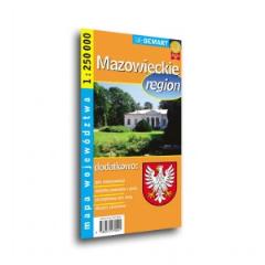 Mapa województwa Mazowieckiego w skali 1:250 000, wzbogacona o pełny wykaz danych teleadresowych urzędów administracji państwowej (urzędy marszałkowskie, urzędy wojewódzkie, siedziby powiatów i gmin).
