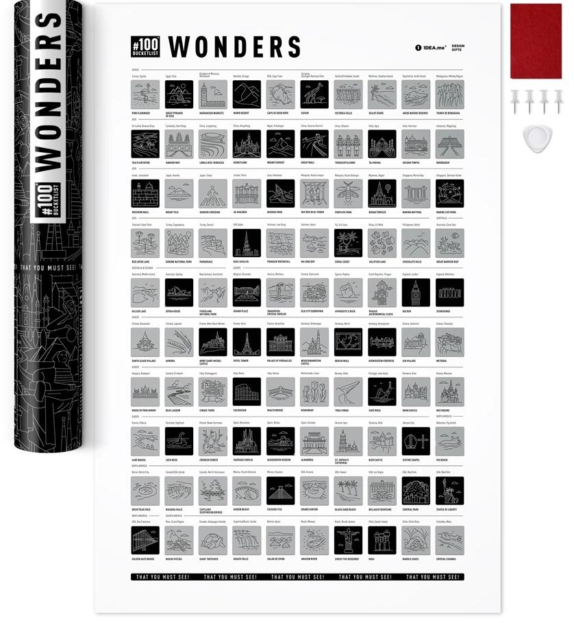 Bucketlist #100 Wonders Edition to wspaniale zaprojektowany interaktywny plakat ze 100 najbardziej imponującymi miejscami na ziemi.