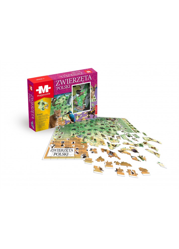 Elementy puzzli odwzorowują kształt krain geograficznych oraz zwierząt i pomnikowych drzew Polski.