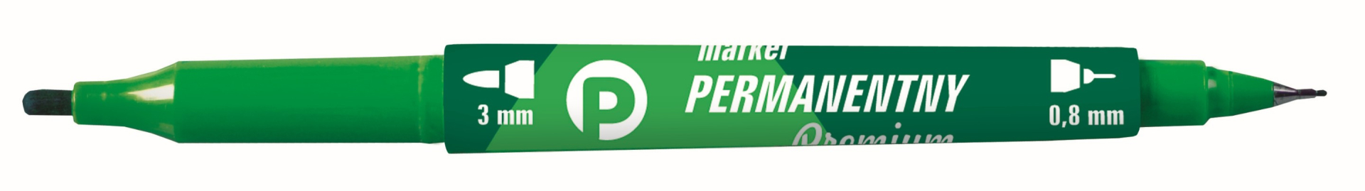 Wysokiej jakości marker premium przeznaczony do pisania na większości powierzchni takich jak: tworzywo, szkło, metal, papier, drewno, skóra, tkaniny. Wypełniony wodoodpornym i szybkoschnącym tuszem na bazie alkoholu. Nie zawiera ksylenu i toluenu. Końcówki okrągła: grubość linii pisania 3 mm, fibrowa: grubość linii pisania 0,8 mm Opakowanie: pudełko 12 sztuk. Kolor: zielony.