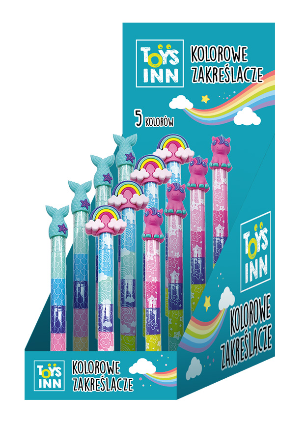 Markery 5w1 , ułożone są jeden na drugim i zakończone kolorowymi końcówkami. Dzięki swym małym gabarytom, zawsze możemy mnieć je pod ręką . Sprawdzą się w szkole lub w domu, do zaznaczania ważnych informacji, jak i do zwykłego rysowania.