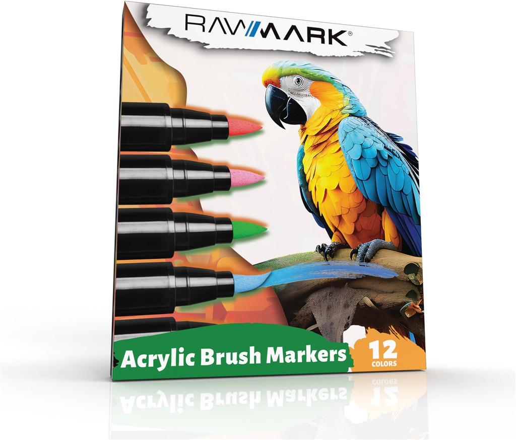 Profesjonalne markery akrylowe 12 sztuk z końcówką pędzelkową.