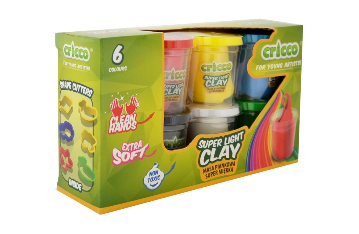 - zestaw mas piankowych w 6 kolorach z praktycznymi foremkami do wycinania