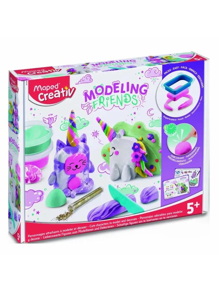 Kreatywny zestaw do tworzenia figurek z masy plastycznej twardniejącej na powietrzu przy pomocy dołączonych drobnych narzędzi. Dwa magiczne zwierzaki: jednorożec i kotorożec czekają, aż ktoś nada im właściwe kształty, przyozdobi i stworzy miłe i kolorowe otoczenie. Zabawa zaangażuje każde dziecko, pobudzając wyobraźnię i dając satysfakcję z samodzielnie wykonanych figurek i dodatków.