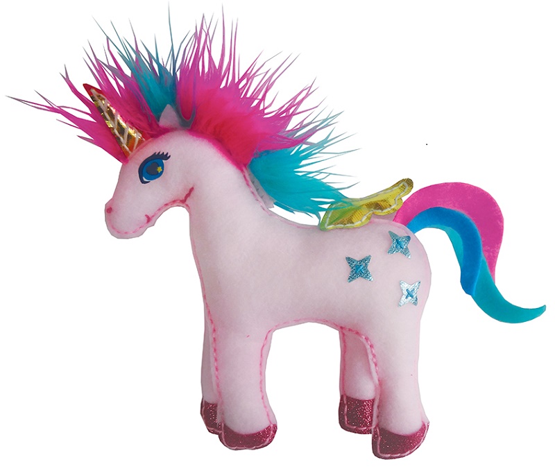 W opakowaniu znajdują się gotowe, wycięte i przedziurkowane elementy do zszycia, bezpieczna plastikowa igła, bawełniane nici, wypełniacz, koraliki, guziki oraz szczegółowa instrukcja.