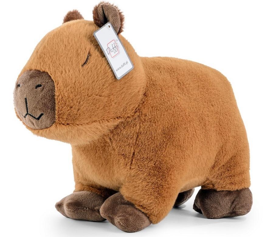 Kapibara została wykonana z wyjątkowo miękkiego i przyjemnego w dotyku pluszu, co gwarantuje komfort przytulania i wysoki standard wykonania. Produkt wyróżnia się naturalną, stonowaną kolorystyką i starannie wyhaftowanymi detalami.