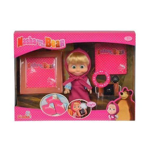 Masza i Niedźwiedź Masza fotograf Masza z aparatem fotograficznym, ze światłem, jedno zdjęcie w ramce i 3 zdjęcia dodatkowe.
