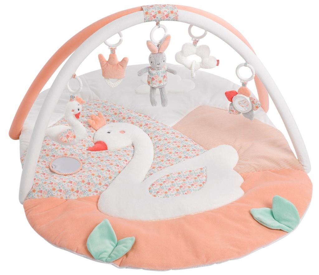 Mata edukacyjna, z kolekcji: Jezioro Łabędzie. To idealny pierwszy plac zabaw dla maluchów. Wraz z dostojnym łabędziem, grzechoczącym zajączkiem, pierzastą chmurką i bezpiecznym lusterkiem do przeglądania, twoje dziecko wyrusza na wielkie przygody i ekscytujące wyprawy do krainy snów. Trójwymiarowa mata aktywacyjna może być używana jako płaski plac zabaw lub jako przytulne gniazdko. Duże lusterko jest absolutną atrakcją maty. Więc twoje dziecko nieświadomie obserwuje relacje między przyczyną i skutkiem. Miękkie materiały zapewniają bezpieczeństwo i optymalny komfort dziecka od samego początku. Urocze zabawki w łukach są łatwo dostępne. Pomagają wyszkolić zmysł dotyku dziecka i koordynację pierwszego kontaktu ręka-oko. Małe zabawki można łatwo wyjąć, bawić się nimi osobno lub przymocować w wielu miejscach, dzięki czemu zapewniają one rozrywkę w domu i w podróży. Miękki i wygodnie wyściełany kocyk oferuje wiele funkcji: tasiemki, skrzydełka,gryzaki i płatki, służą do pociągania, tarmoszenia ściskania i gryzienia. Tekstury i powierzchnie zachęcają do dotknięcia, przytulania i zabawy. Urocze detale chcą być badane przez twoje dziecko. Łuki są łatwe do zdemontowania, dzięki czemu dziecko może używać maty do zabawy, leżenia, raczkowania lub siedzenia, aż w końcu do zasypiania. Odpinane pluszowe, miękkie zabawki. Bezpieczne lusterko, przytulanki, grzechotka, gryzaczek i lusterka to elementy, które pomagają stymulować dotyk i słuch. Zachęca do zabawy oraz ćwiczeń wzmacniających mięśnie. Stymuluje i wspomaga rozwój poznawczy i umiejętności motoryczne. Łatwa w montażu. Wszystkie zabawki niemieckiej marki FEHN są bezpieczne dla dzieci od 0 lat. Wykonane są z najlepszej jakości materiałów. Spełniają normy EN71, CE, badane w instytutach ""Stiftung Warentest"" lub ""kotest.