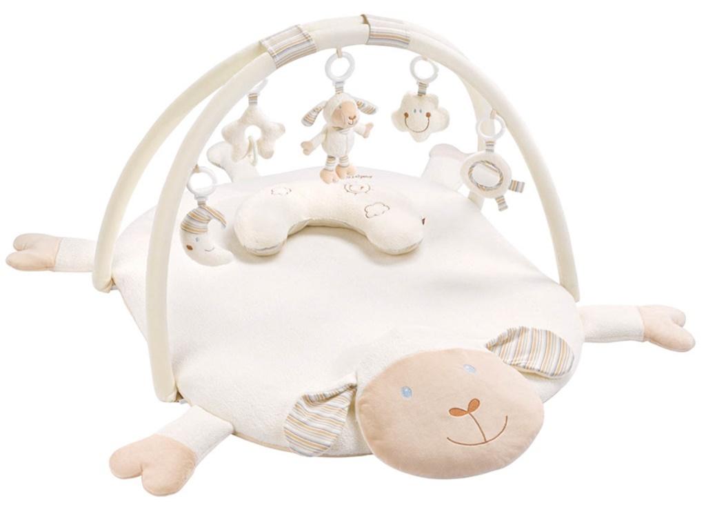 Mata edukacyjna z kolekcji: Kochaj Mnie. To idealny pierwszy plac zabaw dla maluchów. Wraz z przytulanką-owieczką, grzechoczącą gwiazdką i drugą gwiazdką, która pod paluszkami dziecka wydaje delikatny dźwięk, oraz małym pluszowym księżycem i bezpiecznym lusterkiem do przeglądania, twoje dziecko wyrusza na wielkie przygody i ekscytujące wyprawy do krainy snów. Trójwymiarowa mata aktywacyjna może być używana jako płaski plac zabaw lub jako przytulne gniazdko. Miękkie materiały zapewniają bezpieczeństwo i optymalny komfort dziecka od samego początku. Małe lusterko jest absolutną atrakcją maty. Więc twoje dziecko nieświadomie obserwuje relacje między przyczyną i skutkiem. Urocze zabawki zawieszone na łukach są łatwo dostępne. Pomagają wyszkolić zmysł dotyku dziecka i koordynację pierwszego kontaktu ręka-oko. Gryzak o specjalnej strukturze powoduje ulgę podczas fazy ząbkowania. Pięć małych zabawek można łatwo wyjąć, bawić się nimi osobno lub przymocować w wielu miejscach, dzięki czemu zapewniają one rozrywkę w domu i w podróży. Miękki i wygodnie wyściełany kocyk oferuje wiele funkcji: głowa owieczki może pełnić rolę poduszeczki, aksamitny w dotyku obwarzanek- chmurka podtrzyma główkę lub plecy dziecka. Tekstury i powierzchnie zachęcają do dotknięcia, przytulania i zabawy. Urocze detale chcą być badane przez twoje dziecko. Łuki są łatwe do zdemontowania, dzięki czemu dziecko może używać maty do zabawy, leżenia, raczkowania lub siedzenia. Odpinane pluszowe, miękkie zabawki. Bezpieczne lusterko. Przytulanka, grzechotka, piszczałka i gryzaczek to elementy, które pomagają stymulować dotyk i słuch. Miękki obwarzanek do ćwiczeń wzmacniających mięśnie szyi i pleców. Stymuluje i wspomaga rozwój poznawczy i umiejętności motoryczne. Łatwa w montażu. Wszystkie zabawki niemieckiej marki FEHN są bezpieczne dla dzieci od 0 lat. Wykonane są z najlepszej jakości materiałów. Spełniają normy EN71, CE, badane w instytutach ""Stiftung Warentest"" lub ""kotest.