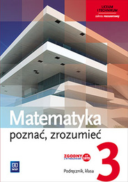 Podręcznik Matematyka. Poznać, zrozumieć umożliwia systematyczne przygotowywanie się do matury z matematyki zarówno na poziomie podstawowym, jak i rozszerzonym. Podręcznik do klasy 3 składa się z czterech rozdziałów: 1. Granica i pochodna funkcji; 2. Stereometria; 3. Statystyka i rachunek prawdopodobieństwa; 4. Powtórzenie.