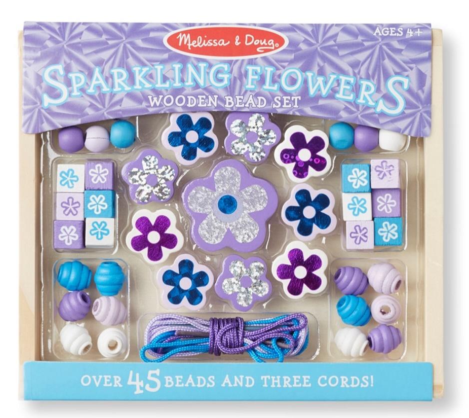 Zestaw drewnianych koralików kwiatki od renomowanego producenta drewnianych zabawek Melissa.Przy pomocy zestawu ślicznych połyskujących koralików możesz stworzyć aż trzy naszyjniki. W zestawie znajdziesz 45 koralików w przeróżnych kształtach: tradycyjnych kuleczek, sześcianów, dużych kwiatków, oraz trzy sznureczki do nawlekania. Dodatkowe proste w użyciu zapięcia pozwolą na wielokrotne zmiany w naszyjnikach, tak by nigdy nie było nudno. Nauka nawlekania zaimplementowana w zabawę ćwiczy motorykę, koordynacje ręka-oko oraz cierpliwość. Na pewno przypadnie do gustu wszystkim małym modnisiom.