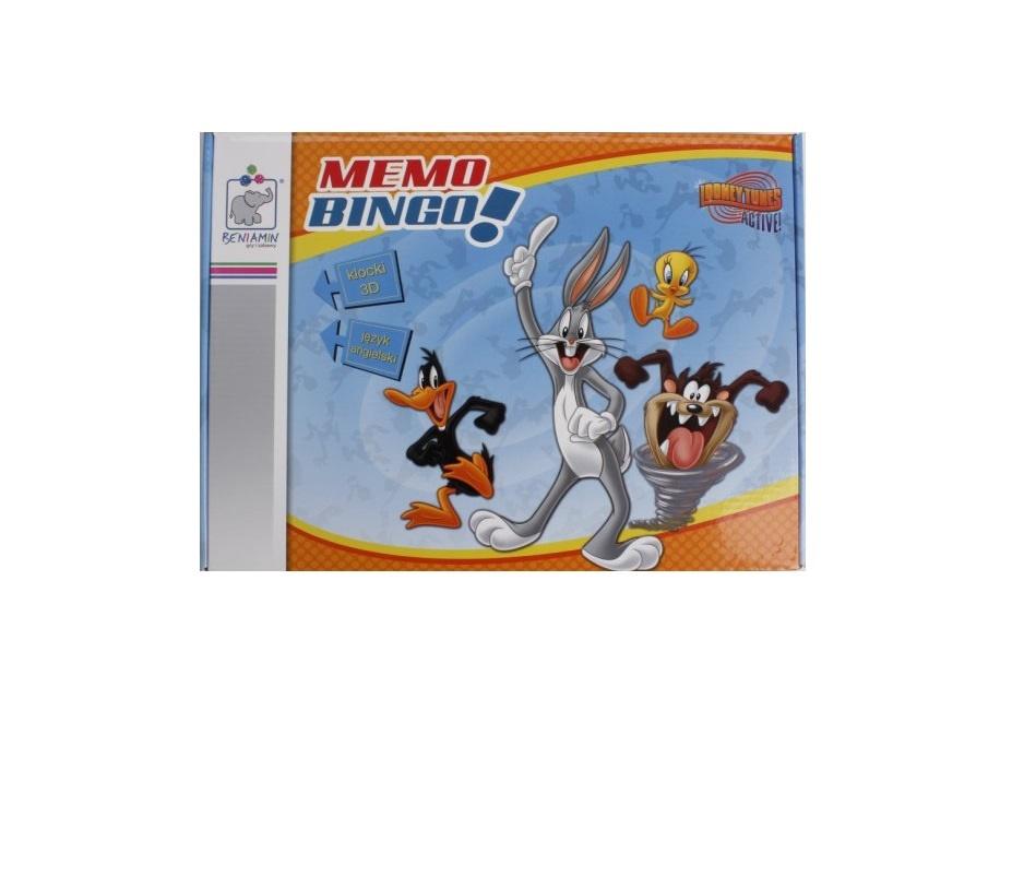 GRA MEMO BINGO to edukacyjna gra pamięciowa przygotowana z myślą o przedszkolakach i dzieciach zaczynających naukę języka angielskiego w szkole podstawowej. Jej zadaniem jest ćwiczenie pamięci wzrokowej i spostrzegawczości, a przede wszystkim pomoc w opanowaniu pisowni wybranych wyrazów z języka angielskiego. Dziecko wraz z bohaterami kreskówek Looney Tunes pozna różne dyscypliny sportowe oraz związane z nimi słownictwo w języku angielskim. Opakowanie gry wykonane jest z kartonu - całość wielokolorowa co przyciąga uwagę. Ponadto gra zawiera 8 plansz, 35 kartoników 3D, 64 żetony do zakrywania pól na planszach oraz instrukcję ze słowniczkiem.