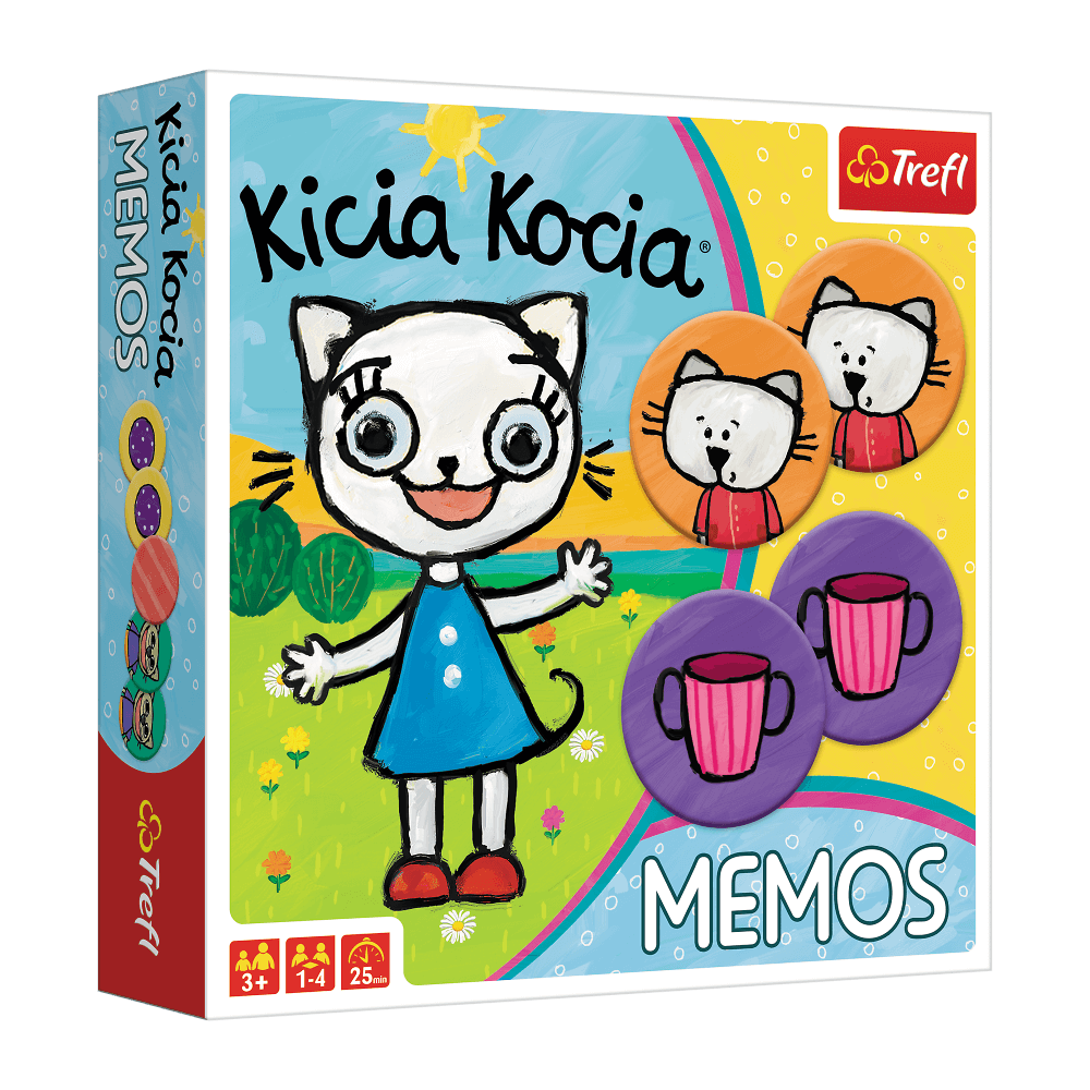 Memos to popularna gra ćwicząca pamięć i spostrzegawczość, która podbiła serca graczy na całym świecie. Tym razem do gry zaprasza Kicia Kocia i jej przyjaciele. Na kartonikach znajdziesz postacie uwielbianej przez dzieci serii książeczek Kicia Kocia. Odkrywaj. łącz w pary takie same ilustracje i baw się razem z Kicią Kocią!