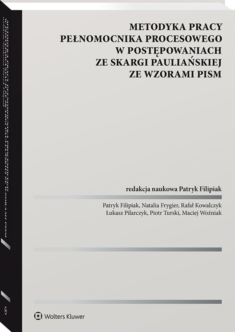Publikacja jest omówieniem instytucji skargi pauliańskiej ze szczególnym uwzględnieniem jej funkcjonowania w obrocie prawnym. W tym aspekcie wychodzi ona poza tradycyjne ramy postępowania cywilnego między indywidualnymi podmiotami, uwzględniając dodatkowo pozostałe obszary jej praktycznego wykorzystywania - w zakresie postępowania restrukturyzacyjnego i upadłościowego. Opracowanie dopełniają rozbudowane uwagi w ujęciu prawnokarnym. Prezentowana materia została przedstawiona z pozycji strony czynnej, tj. pokrzywdzonego wierzyciela. W książce poruszono wiele zagadnień spornych na gruncie problematyki skargi pauliańskiej o charakterze przekrojowym. Uwagi w niej zawarte czerpią w znacznej mierze z dorobku praktycznego jej autorów. Główne atuty publikacji to: - kompleksowe podejście do problematyki funkcjonowania skargi pauliańskiej w obrocie prawnym; - uporządkowany układ zgodnie z dynamiką stosowania instytucji skargi pauliańskiej; - praktyczne podejście w zakresie dochodzenia roszczeń pauliańskich; - liczne uwagi praktyczne, przykłady oraz kluczowe wzory pism; - uwzględnienie obszernego i aktualnego orzecznictwa, zwłaszcza w kontekście dokonującej się rewizji poglądów na kwestie dochodzenia roszczenia pauliańskiego oraz zaspokojenia wierzyciela. Unikalny i nowatorski sposób prezentacji materii skargi pauliańskiej czyni z publikacji przydatne narzędzie w pracy profesjonalnych pełnomocników - adwokatów i radców prawnych, a także sędziów, notariuszy, komorników, prokuratorów oraz organów stosujących prawo. Zainteresuje ona również pracowników administracji, ekonomistów, księgowych, menedżerów oraz przedsiębiorców.