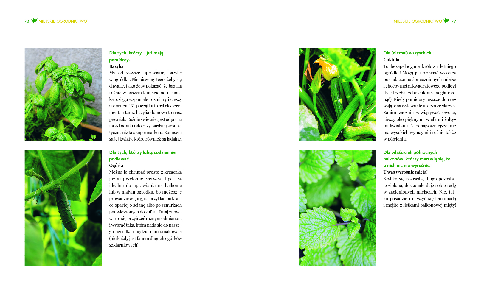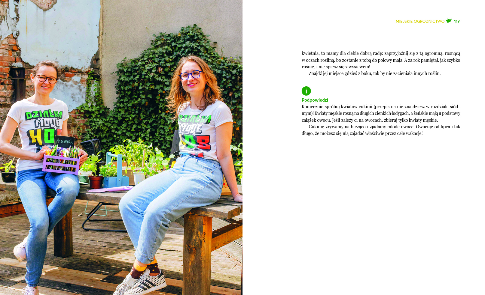 Mieszkasz w mieście, ale marzysz o samodzielnie wyhodowanym pomidorze czy szpinaku? Nic prostszego! Witaj w świecie miejskiego ogrodnictwa! Mnóstwo tutaj doniczek, nasion, pomidorów, truskawek i zarośniętych balkonów. Jest też trochę ziemi pod paznokciami i zalanych parapetów, ale wierzymy, że i tak ci się spodoba. Napisałyśmy tę książkę, żeby zaprosić cię do zielonego świata w mieście. Do magicznej krainy ze szczęśliwymi ludźmi, która naprawdę istnieje. Nie wierzysz? Stwórz nawet najmniejszy ogródek na parapecie i obserwuj, jak rosną rośliny, a przekonasz się, ile radości daje uprawianie i zjadanie (!) własnych warzyw.