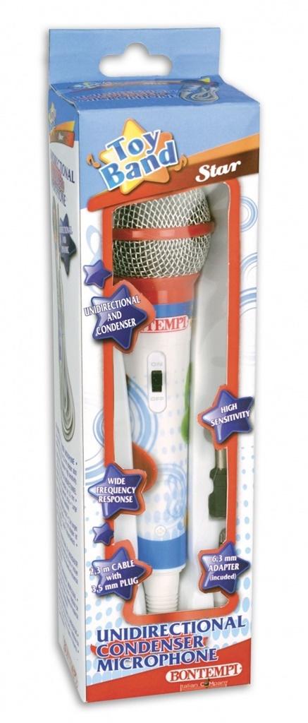 Mikrofon Dynamiczny Karaoke włoskiej firmy Bontempi to idealny instrument dla młodych miłośników śpiewania. Urządzenie posiada przewód o długości 2,3m zakończony złączem audio 3,5 i adapterem w zestawie do złącza 6,3mm. Wymiary produktu 22 x 5,5 x 5,5cm.