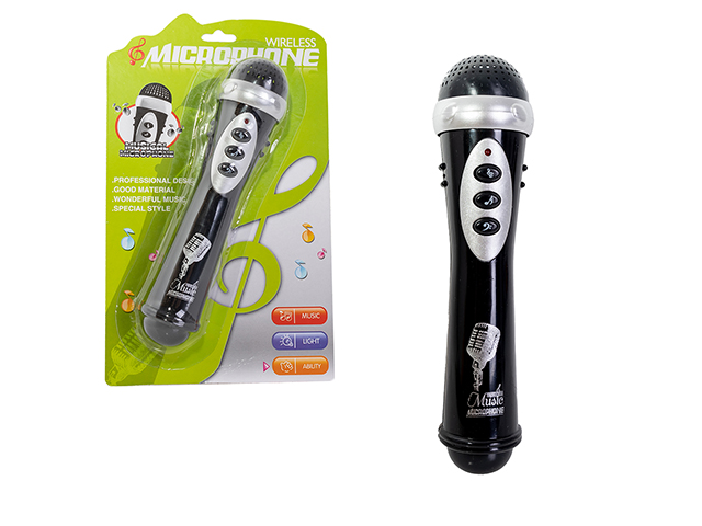 Mikrofon z efektami świetlnymi i muzyką wymiary opakowania:15.5x4x25.5 cm zasilanie: 2xAA (brak w zestawie)