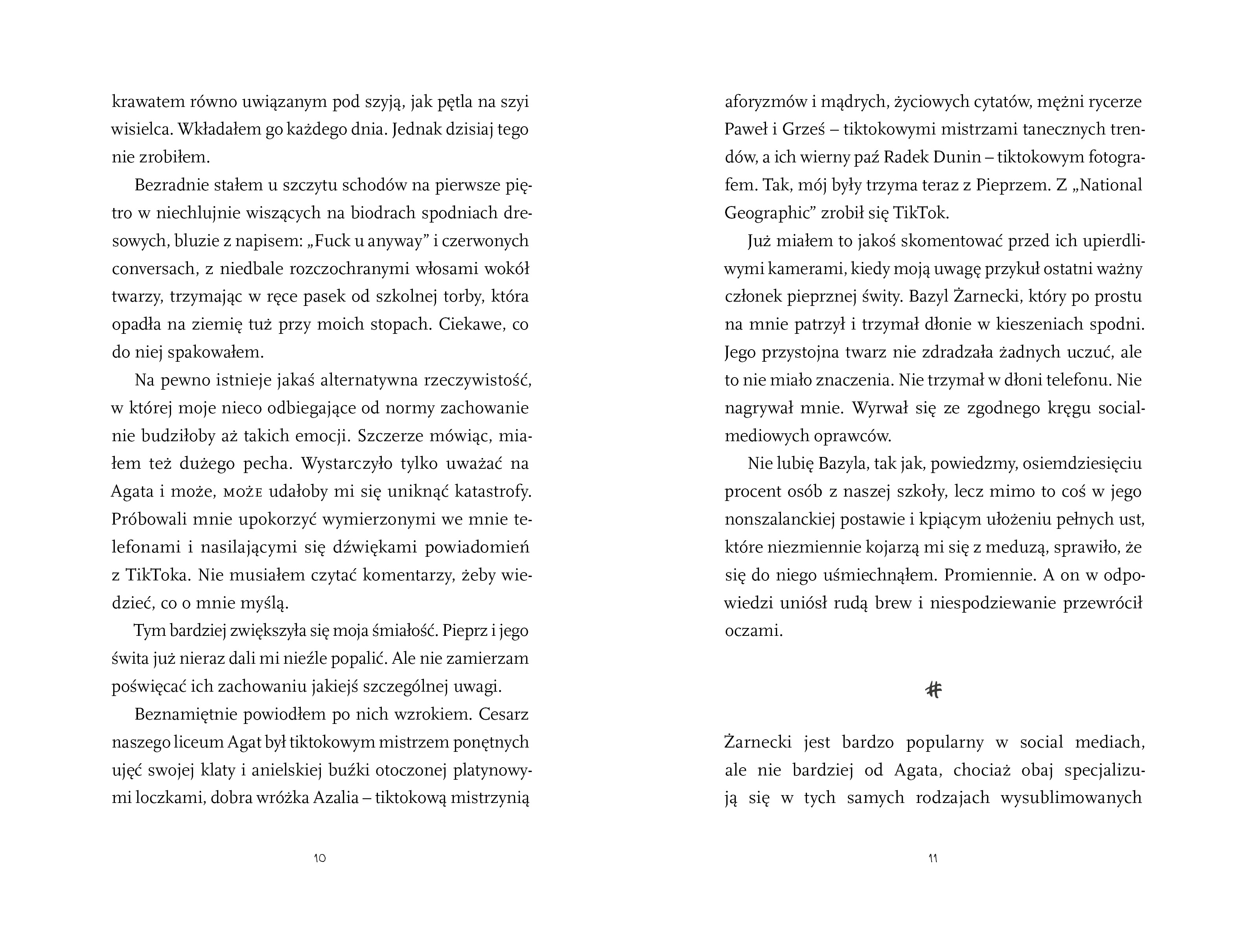 Maks gardzi ich sławą. Zwłaszcza, że jego myśli zaprząta teraz młody polonista. To jemu chce zaimponować. Nie może więc odmówić, gdy dostaje do napisania pracę na temat social mediów. Na swoje nieszczęście musi zbliżyć się do Bazyla i jego znajomych.