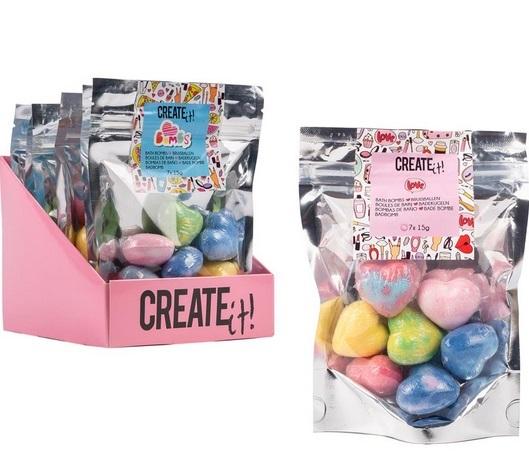 W zestawie znajduje się 7 bomb do kąpieli w unikalnych kolorach w kształcie uroczych serduszek.