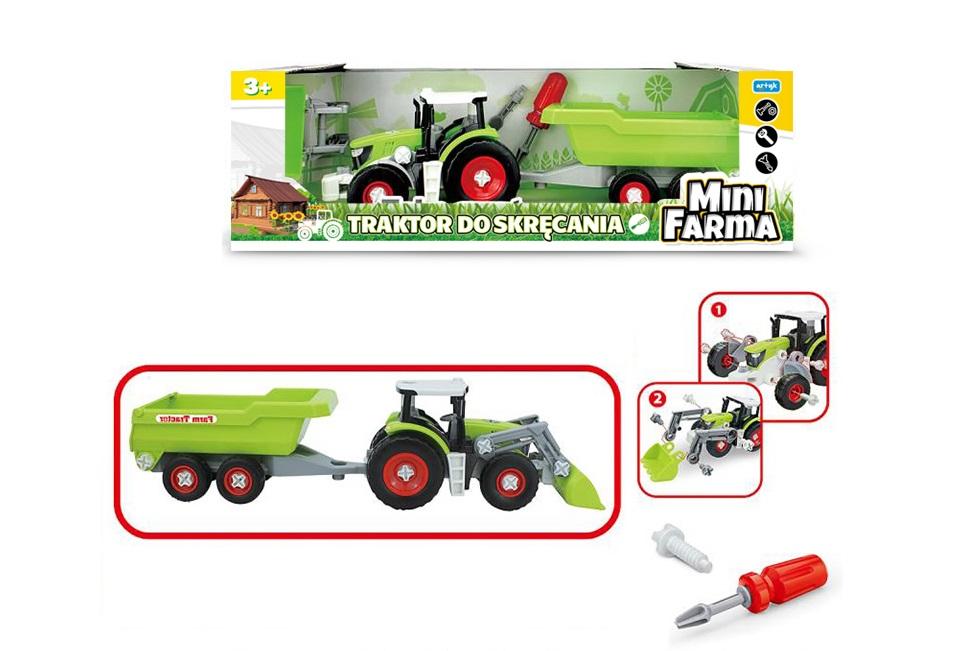 W zestawie: traktor, przyczepa, narzędzia. Wiek: 3+ Wymiary opakowania: 51x16,5x17,5cm.