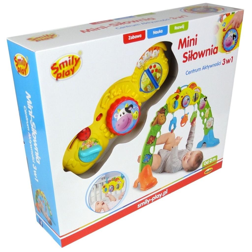 Po rozłożeniu zabawki leżące dziecko może bawić się Mini-Siłownią. Panel z melodyjkami można zamocować do łóżeczka. Grzechotki ze zwierzątkami łatwo odłączyć od zabawki i wziąć ze sobą na spacer.