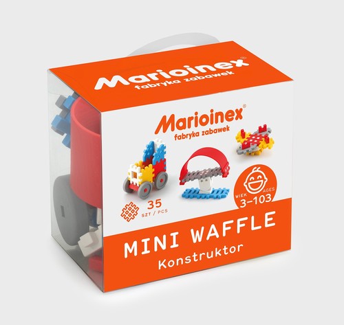 Mini Waffle Konstruktor 35 elementów. Zestaw zawiera nowe klocki, które rozszerzają możliwości konstrukcyjne. Produkt dedykowany dla chłopców.