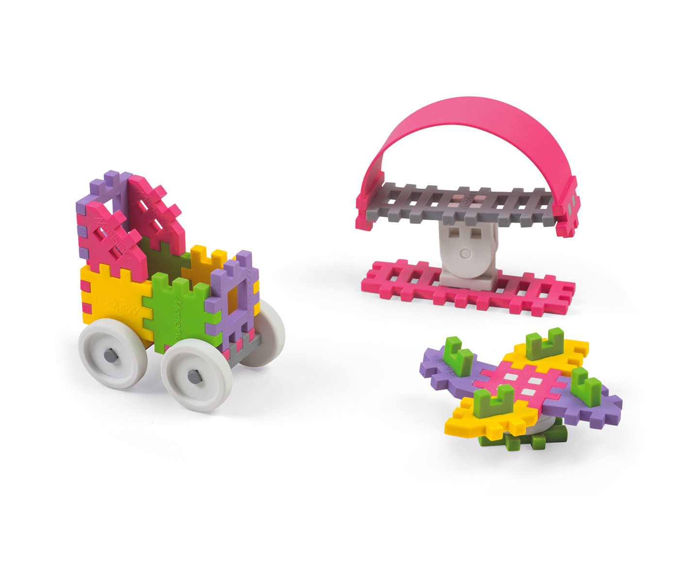 Dzięki nowej technologii produkcji, którą zastosowaliśmy klocki dają się wyginać oraz są ciche i bezpieczne w zabawie.