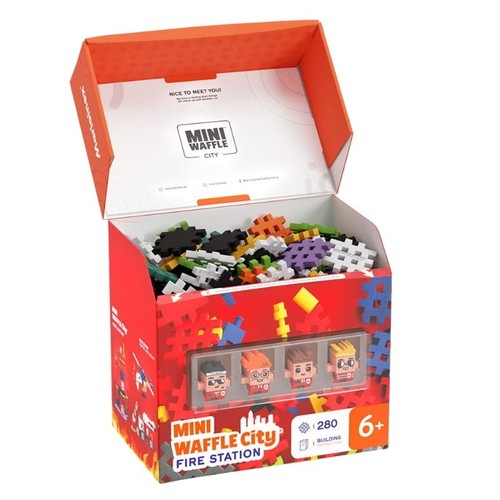 Połącz zestaw z innymi z serii WaffleCity i powiększ miasteczko o dużą remizę strażacką. Parking ze szlabanem dla wozu strażackiego, lądowisko dla helikoptera i pomost, którym przebiegną strażacy, by jak najszybciej nieść pomoc - od teraz mieszkańcy mogą czuć się bezpieczniej. Złóż zestaw według instrukcji lub uruchom wyobraźnię swojego dziecka i skonstruuj z nim własną, unikalną budowlę!