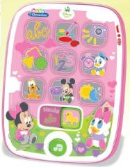 Edukacyjna, mówiąca zabawka: naucza liter, liczb, rozpoznawania kształtów i kolorów. Rozwija umiejętności językowe, wzrokowe i manualne. 2 sposoby gry: baw się i ucz, słuchając prawdziwego głosu Minnie. 10 przycisków funkcyjnych i Gra Światełek.