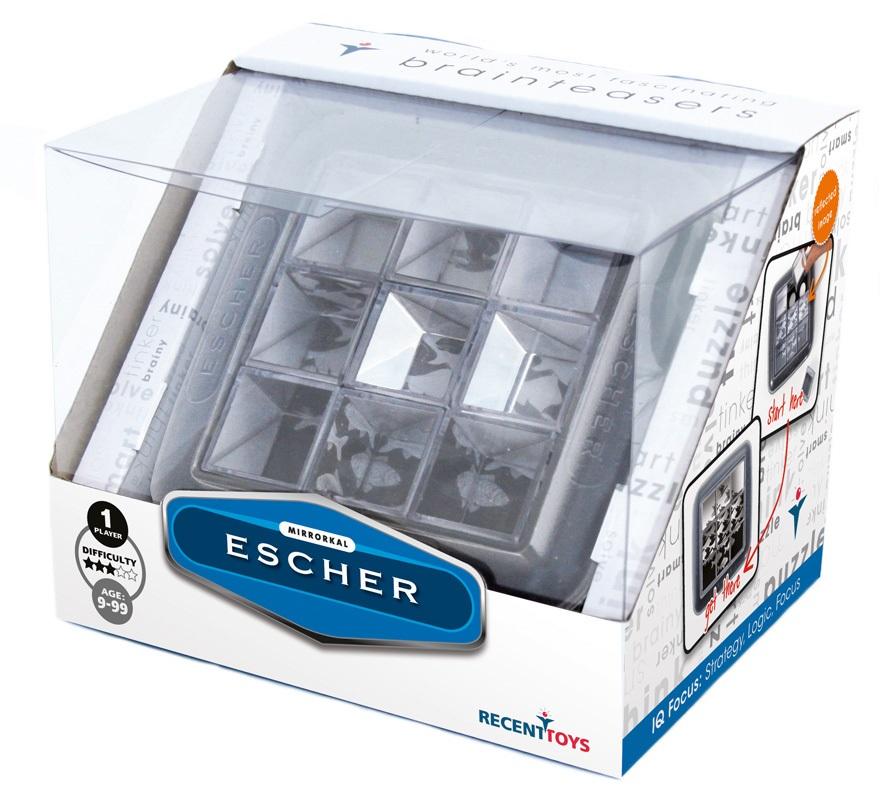 Lustrzana łamigłówka z pięcioma dziełami M.C. Eschera. Aby zacząć należy usunąć wszystkie klocki z ramki. Poprzez umieszczanie w ramce na różne sposoby 9 kostek z lusterkami zainstalowanymi pod różnymi kątami można uzyskać jedną z pięciu grafik Eschera. Problem jest nieco utrudniony, gdyż jak wiecie, rysunki M.C. Eschera to majstersztyki w perspektywie i optyce. Wśród grafik trafimy na takie dzieła jak np. Sky & Water.