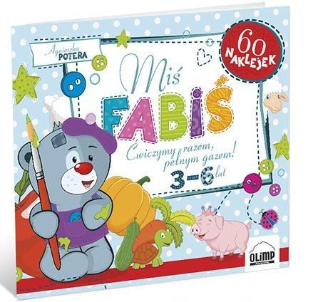 Miś Fabiś to seria 3 edukacyjnych książeczek dla dzieci w wieku 3-6 lat, którym towarzyszy sympatyczny Miś Fabiś i jego przyjaciele. Ćwiczenia dostosowane są do możliwości dziecka i dotyczą strefy jego najbliższego rozwoju. Kolejne części odnoszą się wspomagania rozwoju umysłowego, edukacji matematycznej oraz rozwijania twórczości i sprawności manualnej. Atrakcyjną formą zabawy są kolorowe naklejki, dzięki którym dzieci ćwiczą spostrzegawczość, kojarzenie, logiczne myślenie. Zawiera 60 naklejek.