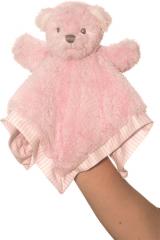 Różowy kocyk-pacynkę z główką niedźwiadka, jak wszystkie maskotki z serii Suki Baby charakteryzuje wyjątkowo  wysokiej jakości, miękkie futerko. Przyjacielski miś jest miłym dodatkiem do małego kocyka, który służy nie tylko do okrywania. Jak za dotknięciem czarodziejskiej różczki po założeniu na dłoń kocyk zamienia się w misową pacynkę. Ponadto ma haftowane oczy i nosek, co sprzyja bezpieczeństwu zabawy z nim. Jest wprost idealny na pierwszy prezent dla  noworodka . Tego milutkiego i mięciutkiego niedźwiadka pokocha każde dziecko  i z pewnością zostaną przyjaciółmi na długie lata.
