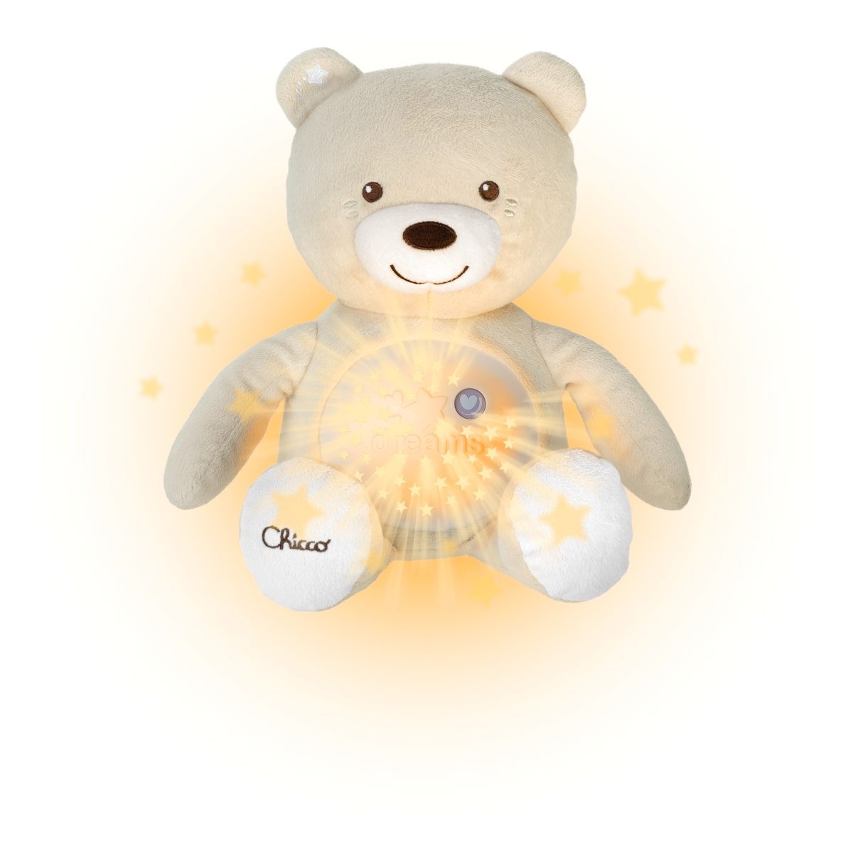 Miękki, delikatny i miły w dotyku pluszak z ukrytym w brzuszku mechanizmem, dzięki któremu czas, który dziecko spędza z maskotką upływa przy akompaniamencie przyjemnej muzyki i efektów świetlnych. Przez brzuszek misia emitowane są efekty świetlne: intensywna, rozgwieżdżona poświata, delikatny blask bądź subtelne światełko, idealne jako nocna lampka. Dźwięki, których maluch słucha nieprzerwanie przez 30 minut to muzyka klasyczna (Bach i Beethoven), muzyka nowoczesna, soft rock, jazz oraz dźwięki natury.