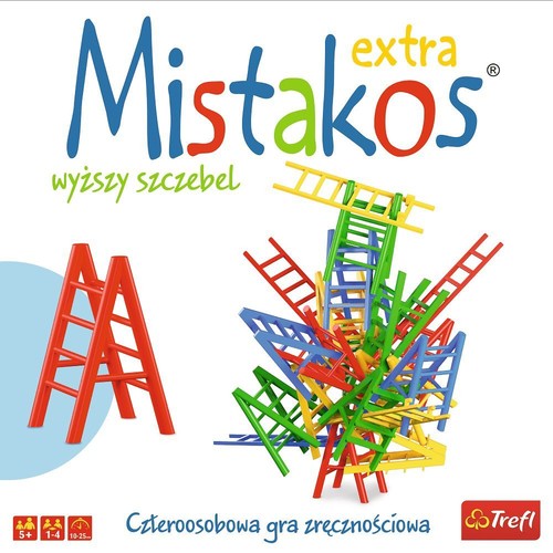 Czteroosobowa gra zręcznościowa Mistakos w zupełnie nowej odsłonie, z drabinami w roli głównej! Zdobądź jak najmniejszą liczbę punktów karnych lub jak najszybciej pozbądź się drabin w danym kolorze w trakcie ustawiania z nich wspólnej, imponującej konstrukcji. Dobra zabawa gwarantowana – teraz także w wiekszym gronie! Pamiętaj, że gry z serii Mistakos możesz ze sobą łączyć. Graj krzesełkami i drabinami w jednym momencie i twórz jeszcze bardziej spektakularne konstrukcje!