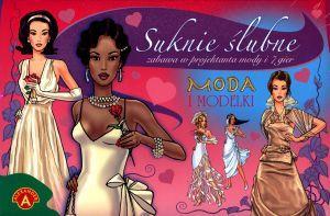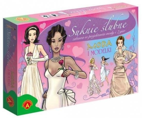 Wspaniała zabawa dla dziewczynek. ""Suknie ślubne"" to trzecia wersja znanej zabawki ""Moda i Modelki"". Opakowanie zawiera 24 plansze. Każda plansza przedstawia modelkę w oryginalnej sukni ślubnej i podzielona jest na 4 części. Każdą z części można odpowiednio podstawiać do innych plansz co daje możliwość tworzenia ogromnej ilości nowych kreacji. Elementy zabawki można wykorzystać w grach, które są jej atrakcyjną częścią. Gra dla 1-6 graczy w wieku od 4 lat.