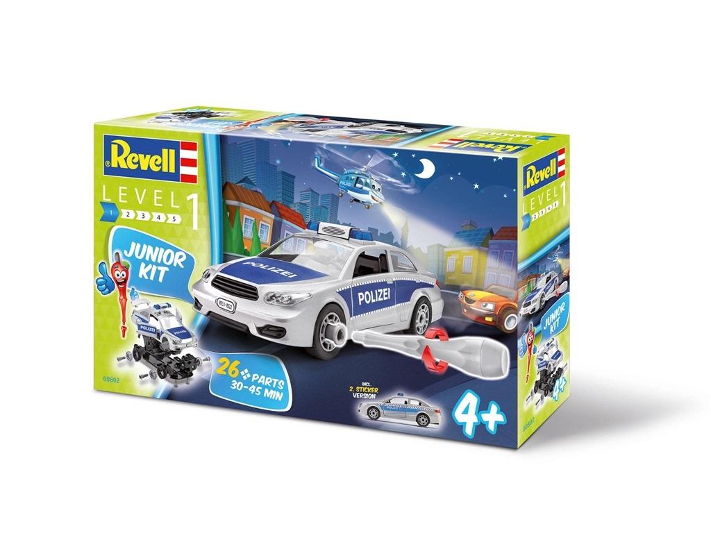 Policja potrzebuje nowego, szybkiego samochodu. Zbuduj go i ścigaj przestępców! W otwieranym bagażniku znajdują się dwa pachołki, przydatne podczas akcji policyjnych. Od teraz mali stróże porządku publicznego mają coś dla siebie. Już w wieku 4 lat, mogą zmontować samochód policyjny. Zabawa jest bardzo prosta. Wystarczy skręcić elementy samochodu przy pomocy specjalnych śrub i śrubokręta. Kolorowa, obrazkowa instrukcja montażu poprowadzi małego konstruktora krok po kroku. Długość modelu około 235 mm. Czas budowy około 30 do 45 minut. Zawiera 26 części + 24 elementów złącznych.