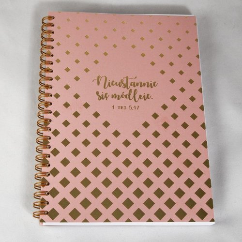 Mój dziennik - Jest to specjalnie skrojony zeszyt, który zawiera werset biblijny na każdej kartce. Jeśli jesteś osobą, która zapisuje myśli, modlitwy bądź słowa Boga, które do ciebie przemówiły, jest to idealny produkt dla ciebie. Produkt został uszlachetniony w specjalny sposób - okładka jest tłoczona oraz litery są wykonane ze złotej folii. Spirala dodaje wspaniałości swoim złotym kolorem. Okładka jest usztywniona dodatkowo gramaturą papieru. liczba kartek 120 (240 stron)