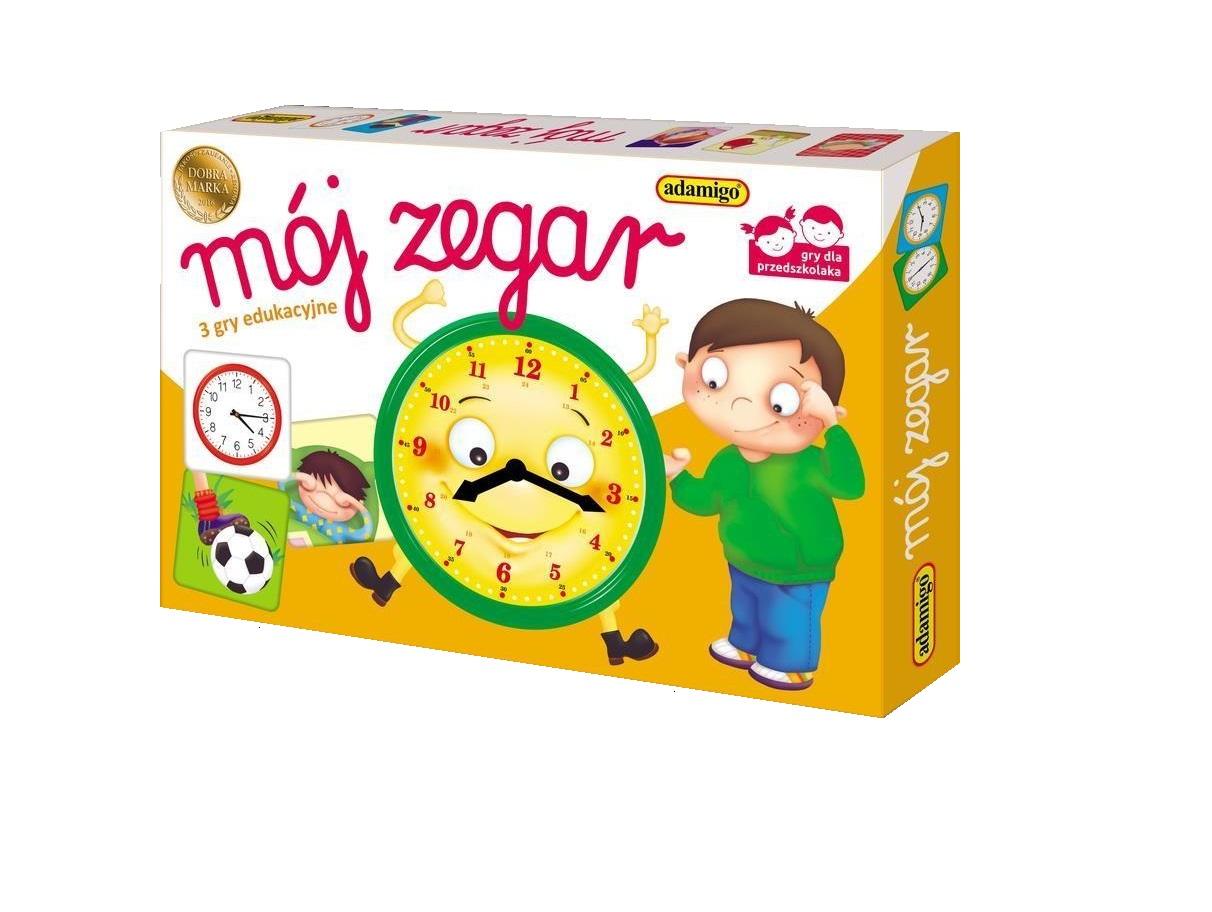 "Mój zegar" to ciekawa oraz mądra gra zarówno dla małych, jak i większych miłośników dobrej zabawy. Kolorowe, interesujące plansze i tafelki oraz duży zegar z ruchomymi wskazówkami pokazują, jak przyporządkować różne czynności do odpowiednich pór dnia.