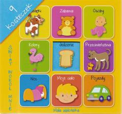 To słodkie pudełko wypełnione jest dziewięcioma uroczymi kosteczkami. Każda z nich zawiera kolorowe obrazki i słowa, które rozwiną słownictwo twojego malucha. W serii znajdziesz kosteczki o następujących tematach: gospodarstwo, zwierzęta, codzienne zajęcia oraz świat wokół mnie. Książeczki są na tyle malutkie, że dzieci mogą je ze sobą nosić lub układać jak klocki. Zbierz wszystkie tytuły z serii i utwórz swoją własną biblioteczkę, w której zgromadzisz nawet do 400 słów!