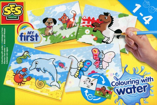 Magia z wodą i farbą - bez bałaganu! Z tym konkretnym zestawem SES jest to możliwe. Maluj mokrym pędzelkiem na szablonie, a zobaczysz jakie kolory ożywają. Pędzelek zrobiony jest z bezpiecznego włosia. Obrazki służą do wielokrotnego użytku. Zaraz po wyschnięciu możesz bawić się na nowo.