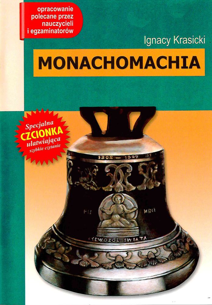 Tematem utworu jest walka pomiędzy mnichami dwóch zakonów: karmelitów i dominikanów. Przedstawienie sporu mnichów w utworze naznaczone jest groteskowym humorem. Jednocześmie Monachomachia jest ostrą satyrą, krytyką ukrytą pod kostiumem zabawnych postaci.Utwór jest dynamiczny, pełen komizmu - przykładem jest choćby scena batalistyczna, kiedy to idą w ruch naczynia i trepy, postać ojca Hilarego czy też fakt, że zwaśnionych godzi mocny trunek i wspólna namiętność do kielicha.Monachomachia wywołała skandal - występowała przeciw zakonom, zasobnemu życiu duchownych, próżniactwu i zacofaniu. Stanowi utrzymaną w duchu oświecenia krytykę wad społecznych, obecnych również w Kościele, czego Krasicki nigdy nie ukrywał.