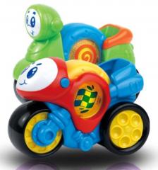Kolorowe pojazdy, które zachęcą dziecko do aktywnej zabawy. Kiedy maluszek naciśnie na roler uruchomi efekty świetlne oraz zabawne dźwięki. Wystarczy umieścić go w pojeździe, poprowadzić rączką motocykl, aby obserwować jak roler obraca się podczas jazdy. Dodatkowo zabawka wydaje realistyczny odgłos motocykla. Motoroler na pewno przypadnie do gustu maluchowi. Zabawka przeznaczona dla dzieci od 12 m.